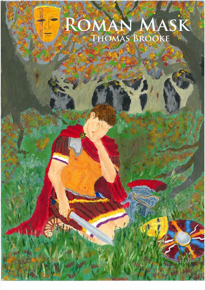 Fortunately, the guys at ‘Design for writers’ managed to find an image from Creative Commons (who very kindly allowed us to use it) of the actual mask found in Kalkriese, the archaeological site of the battle of Teutoburg. My painting was based on another image of this same mask, and I am delighted that we could use a genuine artefact from the battle that is at the heart of my novel. We added some texture to the image and on my direction gave the mask an earthy colour in order to blend in with the background imagery.